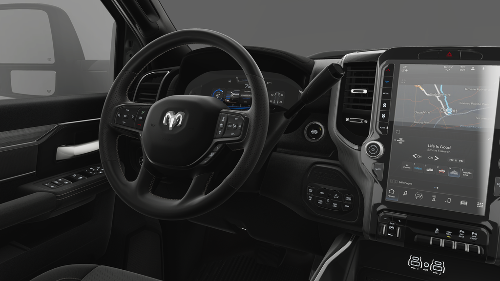 Beneath the bold, muscular exterior lies a powerhouse 6.4L V8 HEMI engine, paired with an 8-speed automatic transmission and robust 4-wheel drive system. Conquer any terrain with confidence, thanks to the Ram Articulink suspension, Tru-Lok front and rear axles, and front disconnecting stabilizer bar.